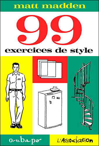 Se réfèrant aux Exercices de style de Raymond Queneau, l’Oubapien new-yorkais Matt Madden a réalisé 99 planches de bande dessinée qui sont autant de variations sur une même scène de base. Un véritable manuel pédagogique d’OUBAPO, ainsi qu’une impressionnante leçon technique et historique de Bande Dessinée (et de comics).